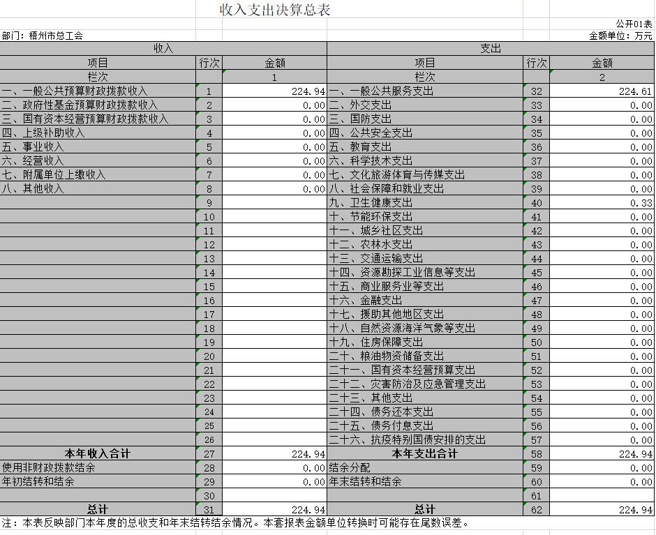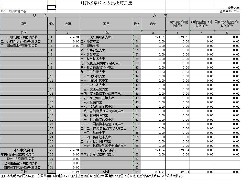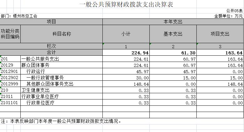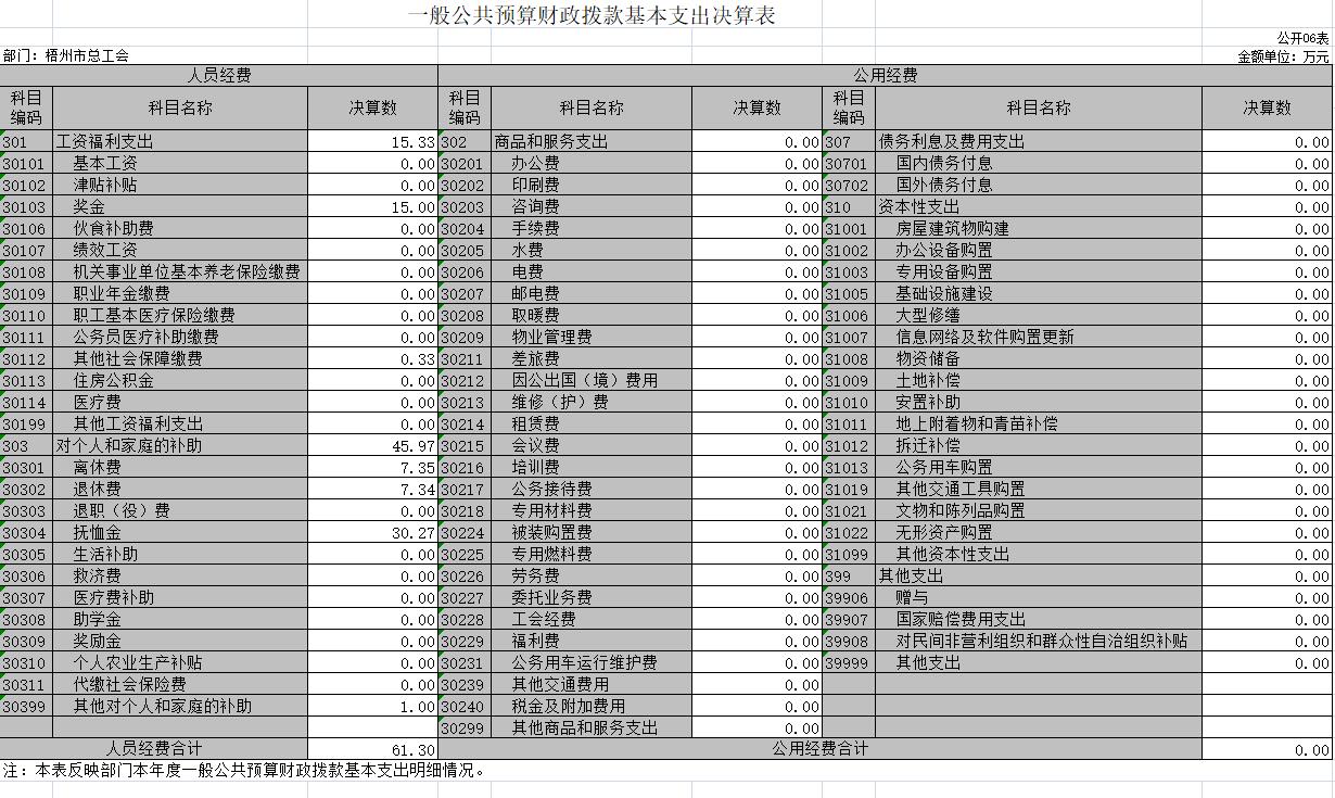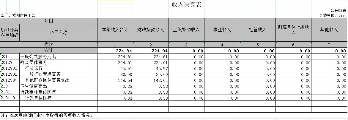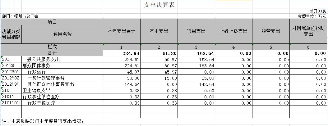 梧州市總工會(huì)2020年度部門(mén)決算公開(kāi)表樣