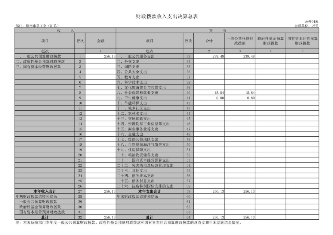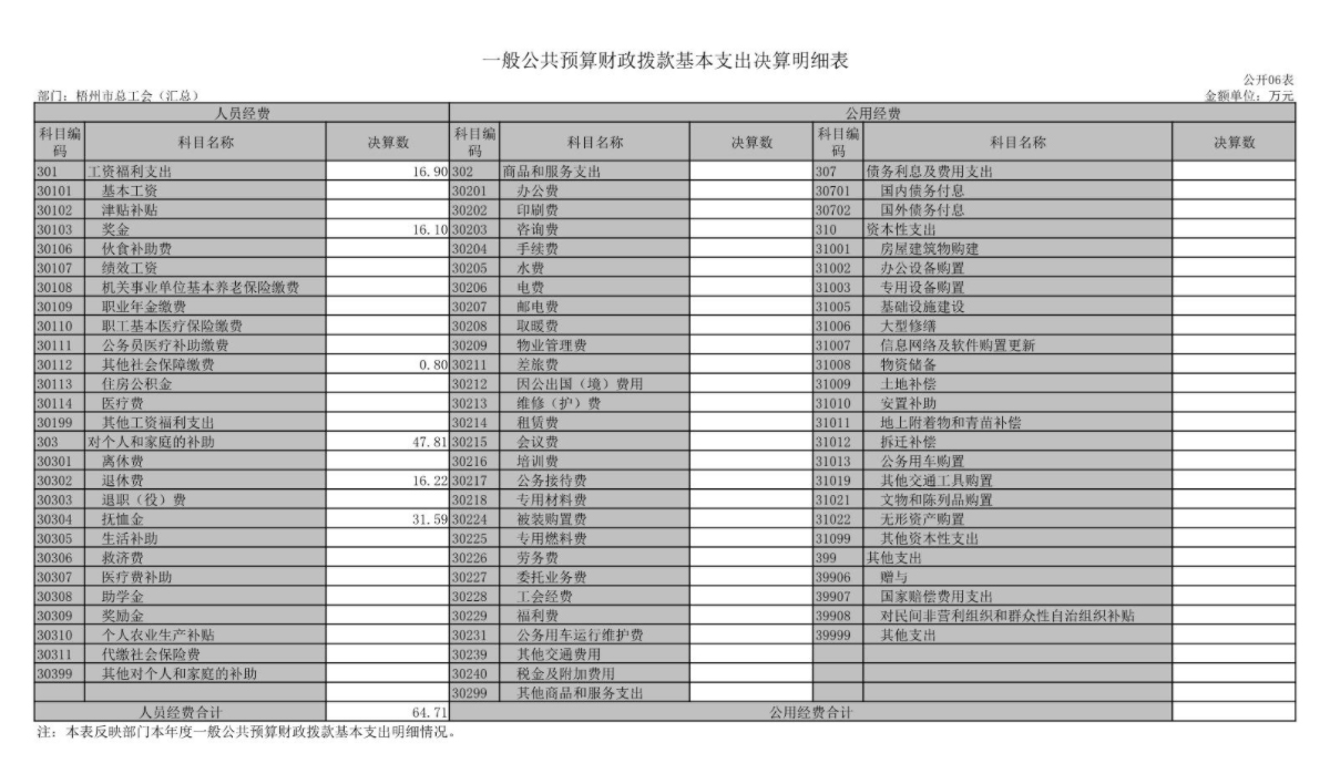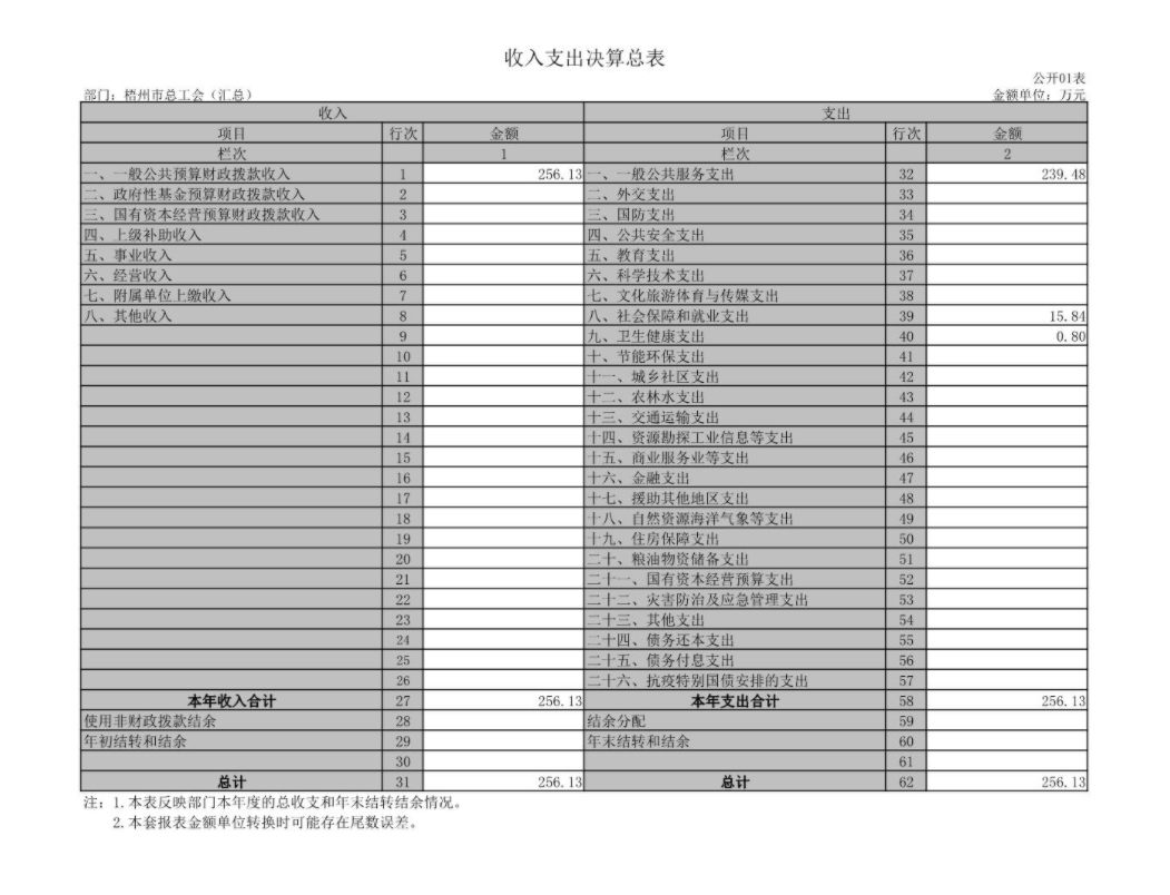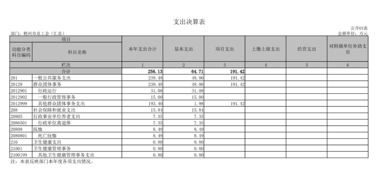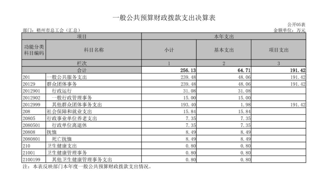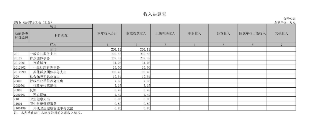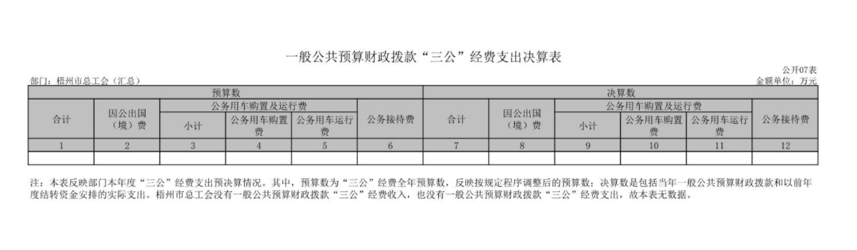 梧州市總工會(huì)2021年度部門決算報(bào)表