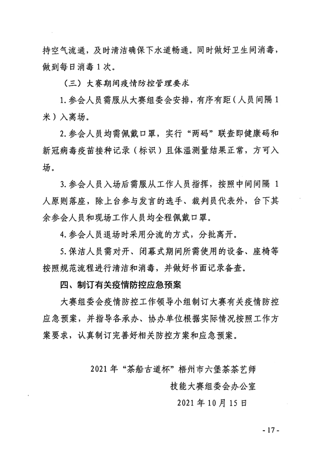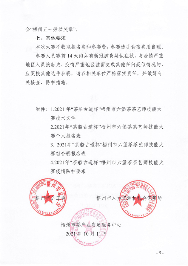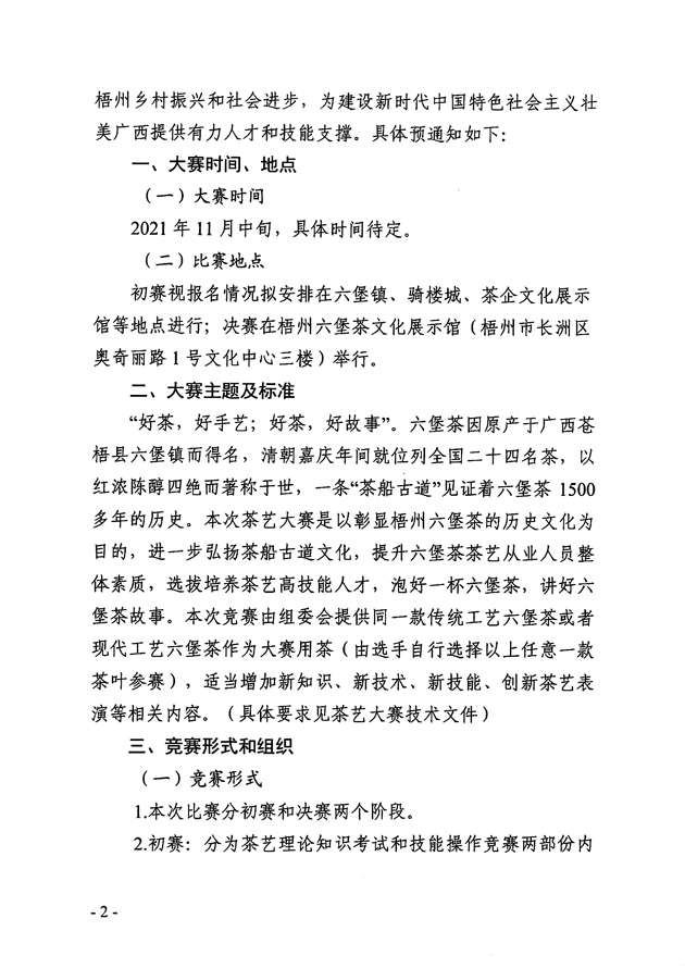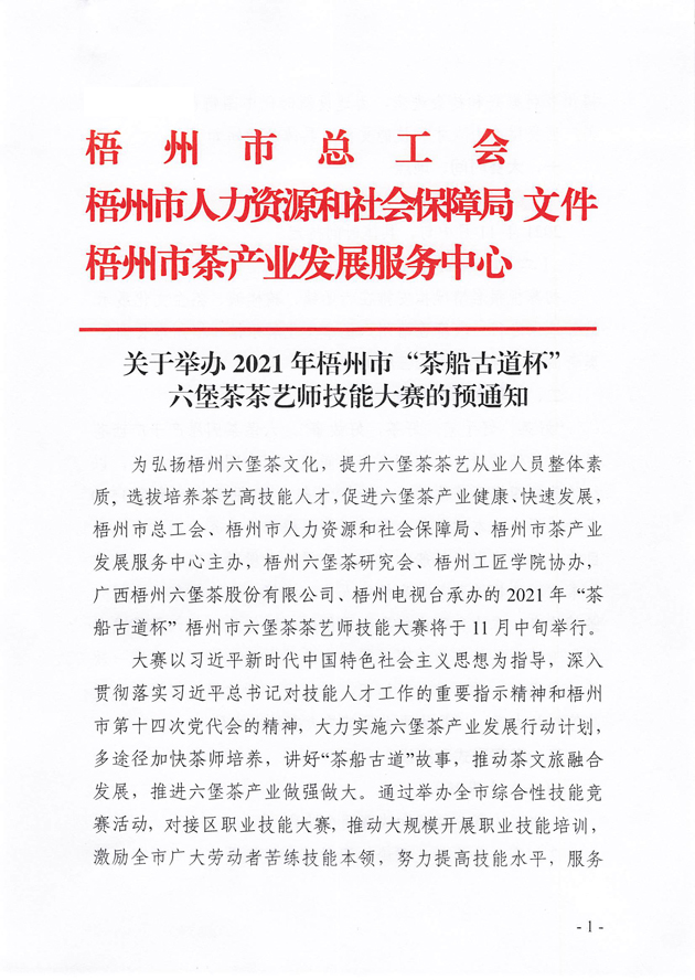 關(guān)于舉辦2021年梧州市“茶船古道杯”六堡茶茶藝師技能大賽的預(yù)通知