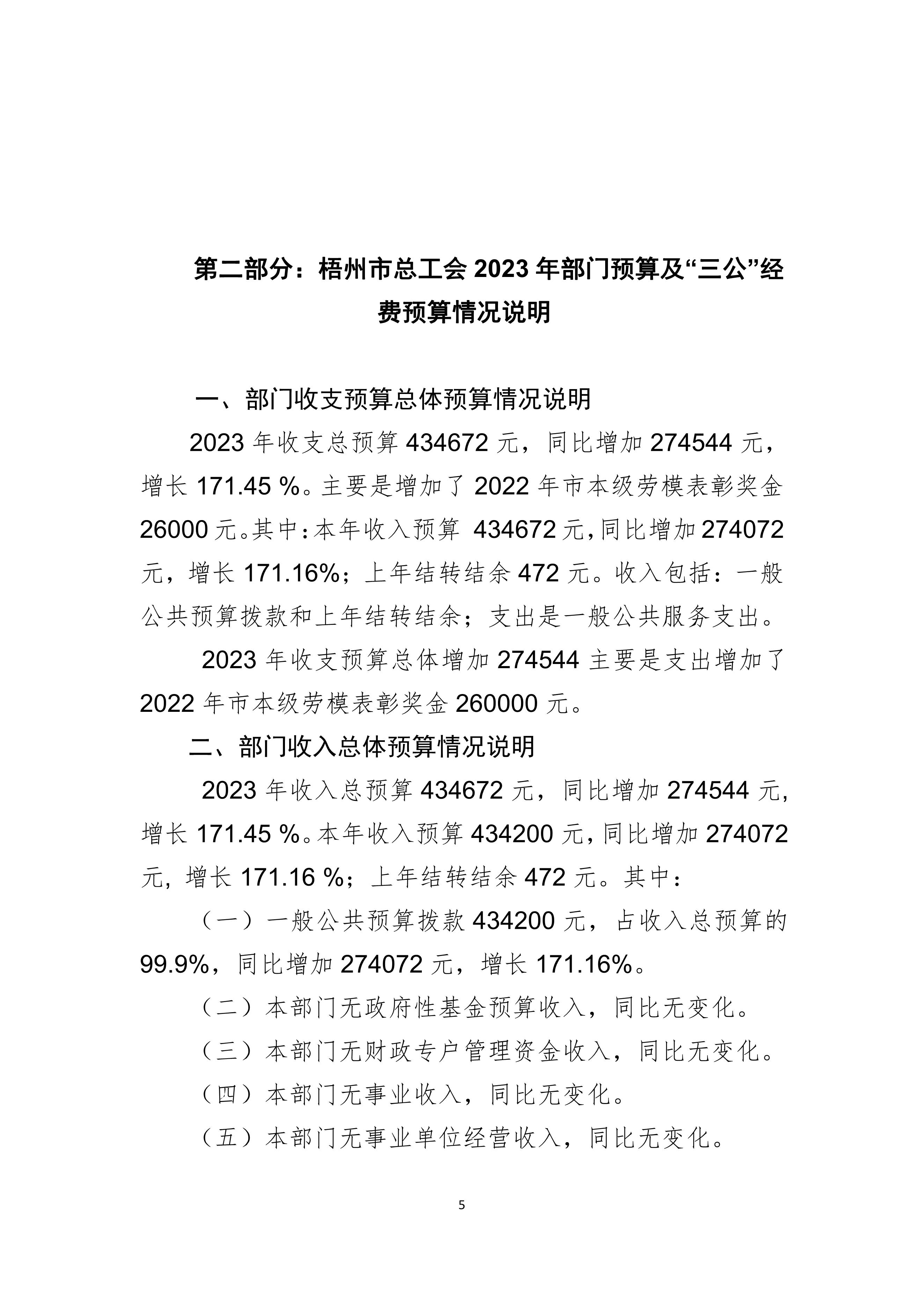 梧州市總工會2023年部門預(yù)算及“三公”經(jīng)費(fèi)預(yù)算情況說明