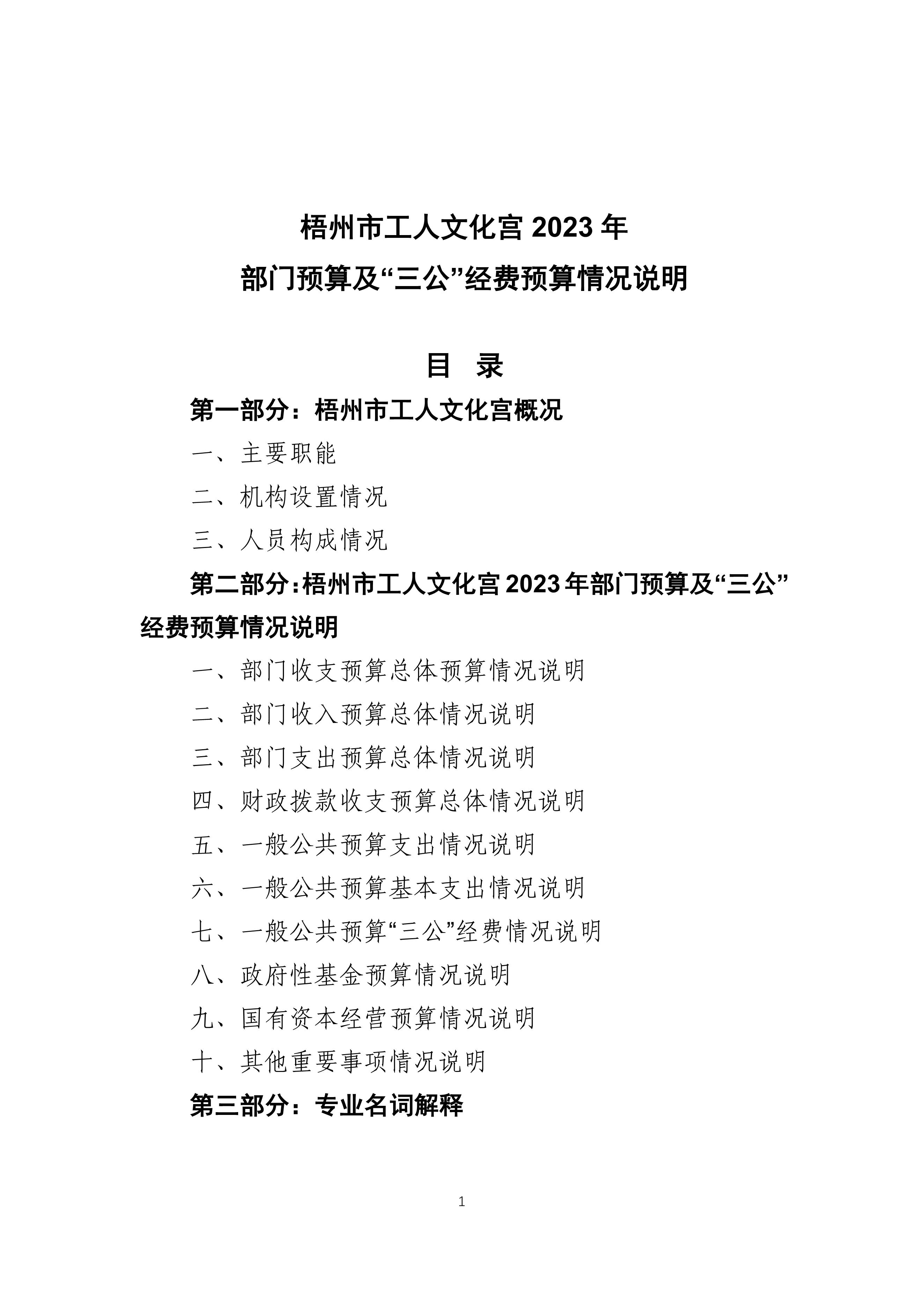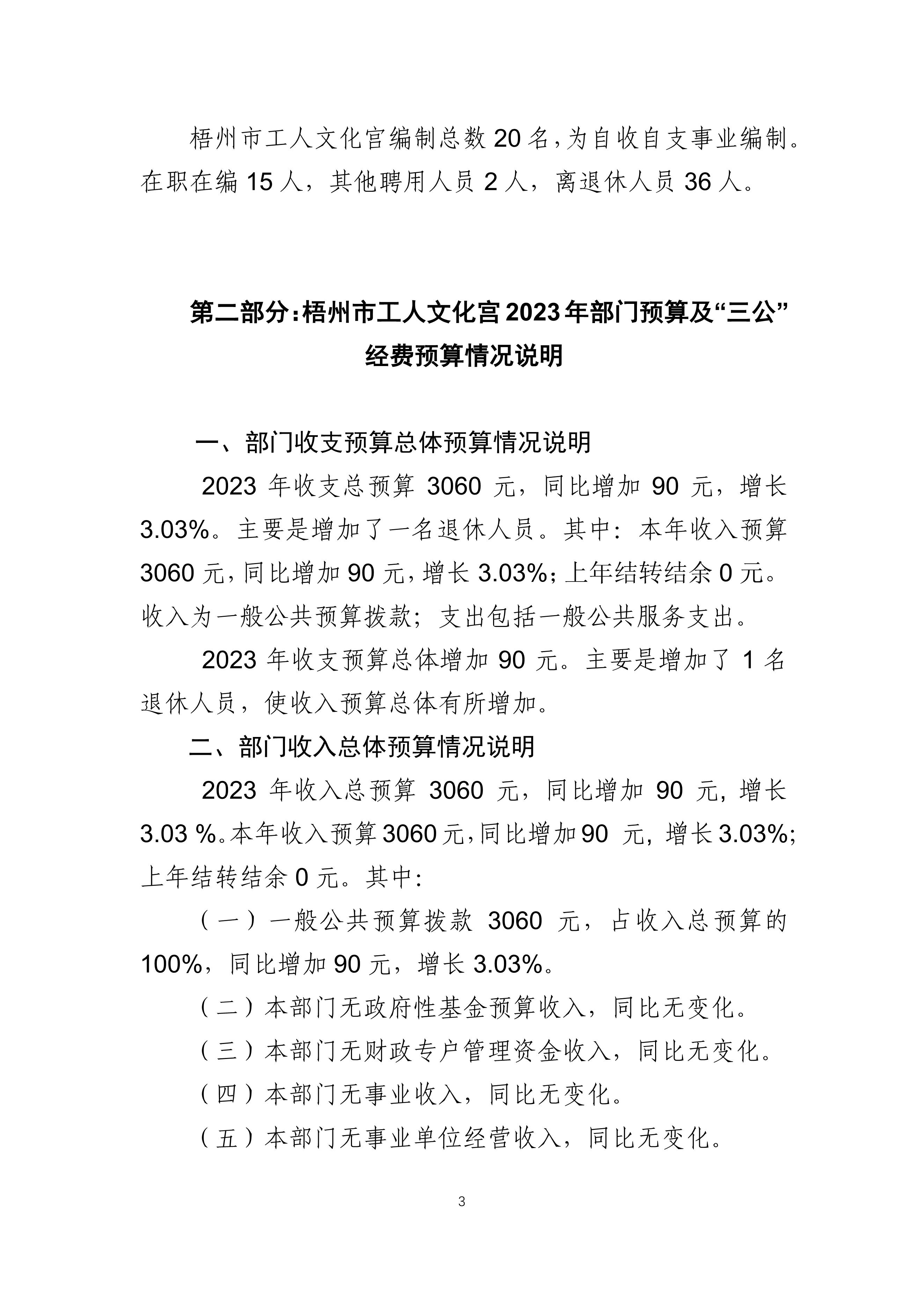 梧州市工人文化宮2023年度部門預算及”三公“經(jīng)費預算情況說明