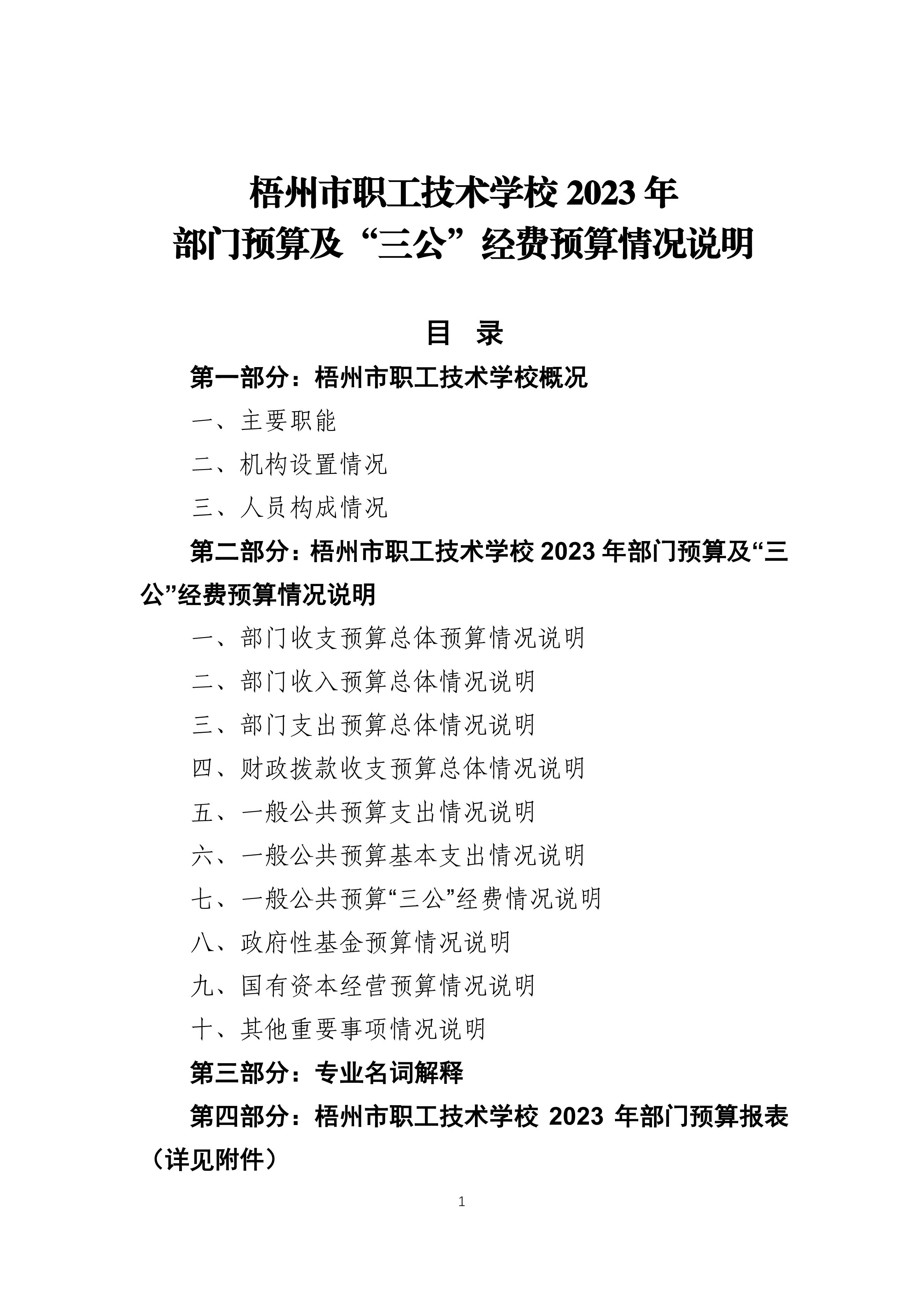 梧州市職工技術(shù)學(xué)校2023年度部門預(yù)算及”三公“經(jīng)費(fèi)預(yù)算情況說明