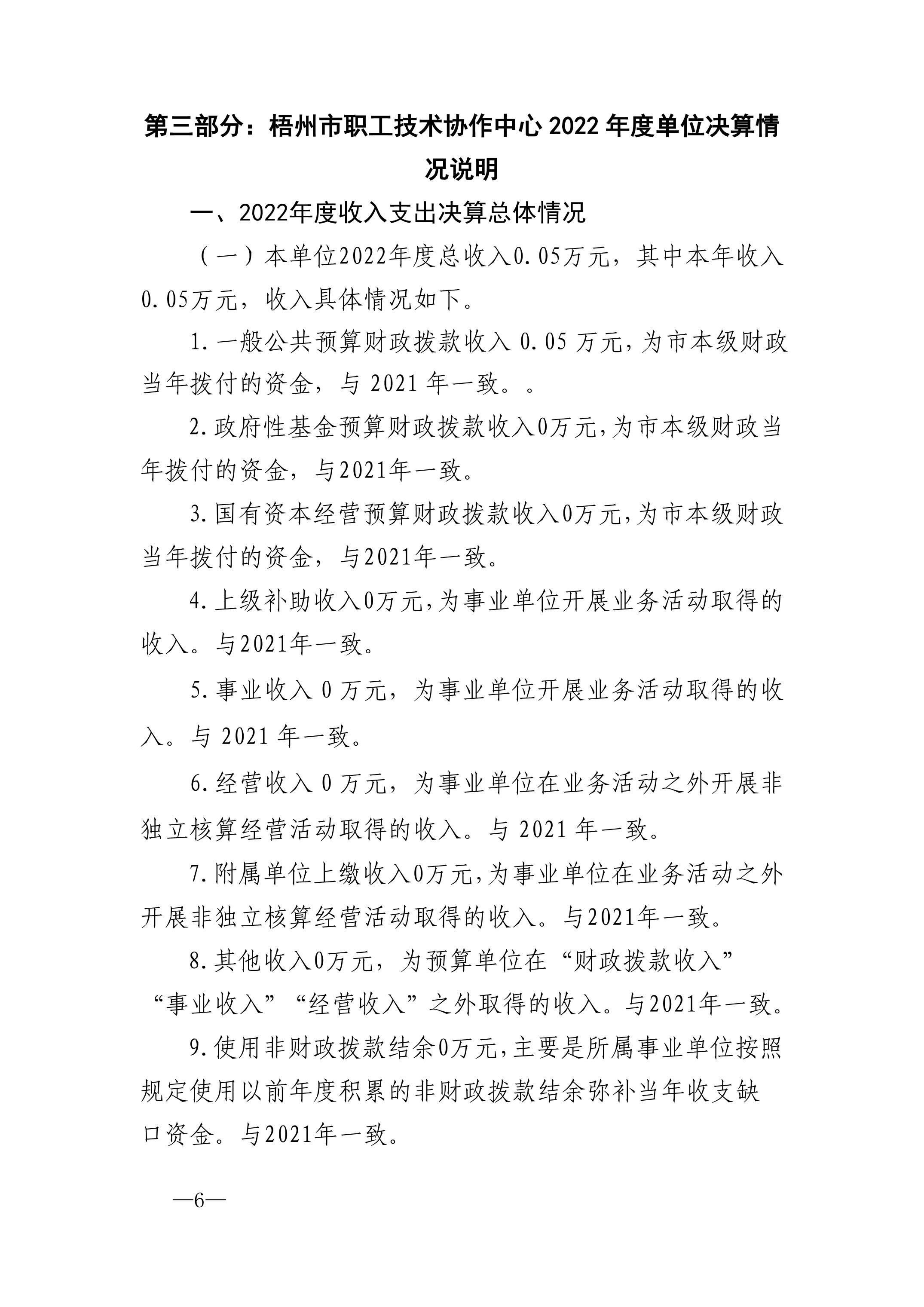 梧州市職工技術(shù)協(xié)作中心2022年度單位決算公開報(bào)告