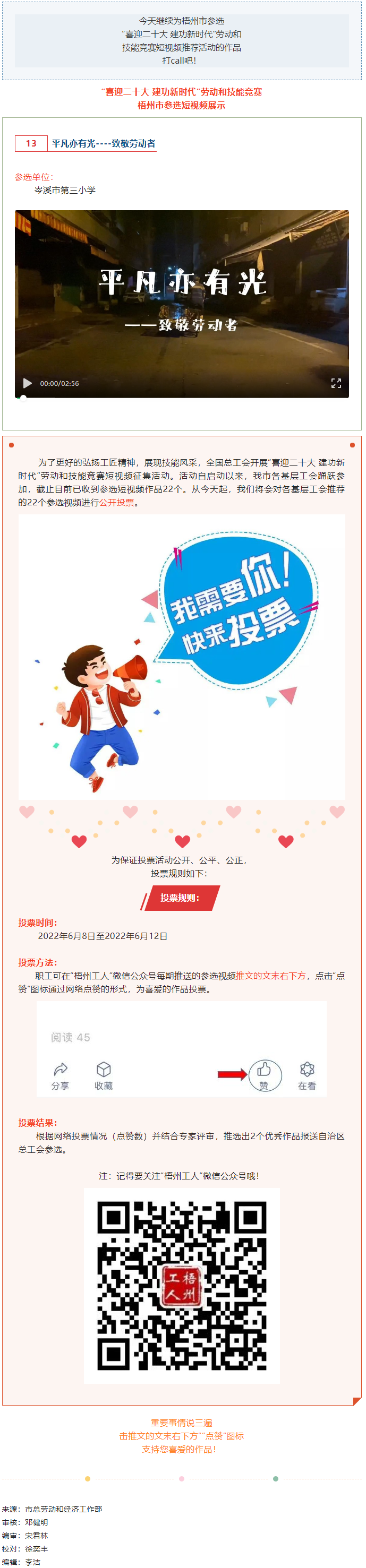 岑溪市第三小學(xué)參選作品丨“喜迎二十大 建功新時代” 勞動和技能競賽短視頻投票活動開始啦!