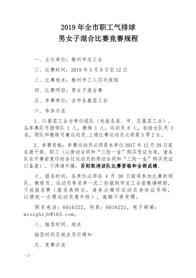 2019 年全市職工氣排球男女子混合比賽秩序冊(cè)