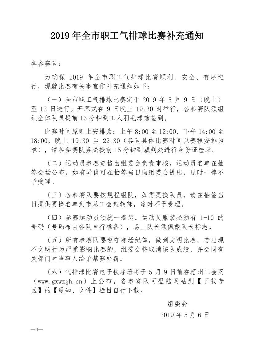 2019 年全市職工氣排球男女子混合比賽秩序冊