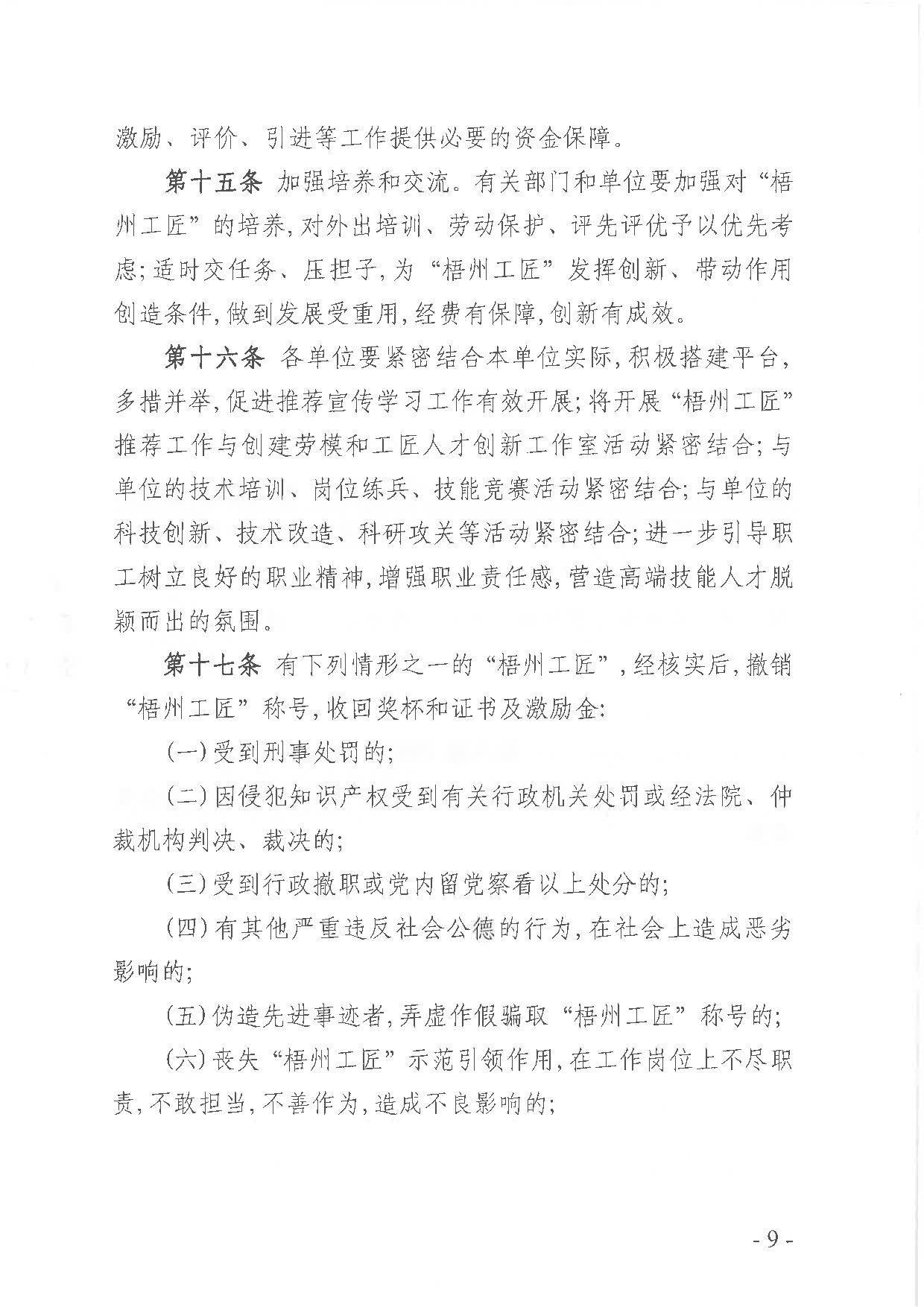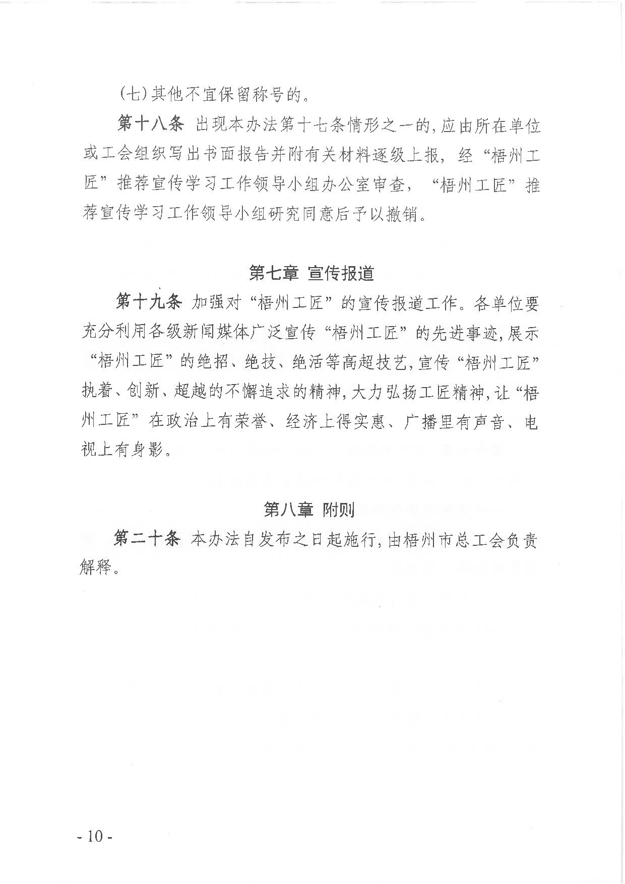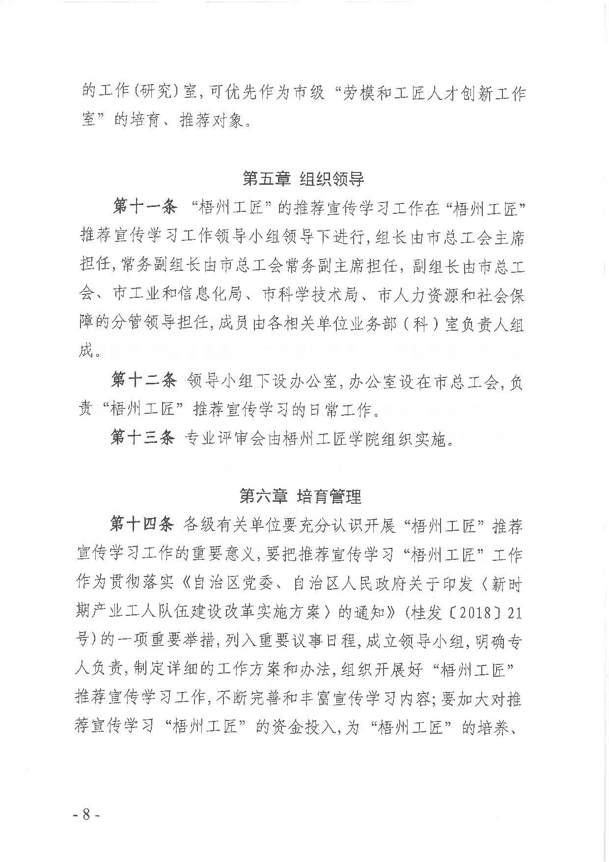 關(guān)于印發(fā)《“梧州工匠”推薦宣傳學(xué)習(xí)工作辦法(試行)》的通知